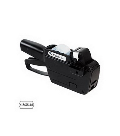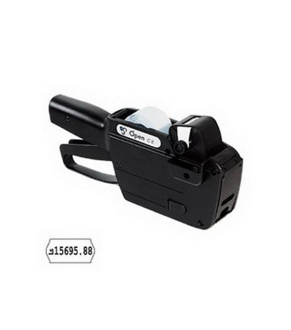 Kainų etikečių aparatas BLITZ C8. Gali spausdinti 1 eilutę (8 spausdinimo juostelės). Etikečių dydis: 26 x 12 mm.Euro simbolis