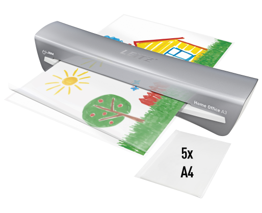 Vieną A4 dokumentą (2x80 mikronų) laminuoja per 45 sekundes.
