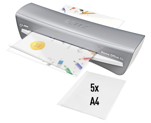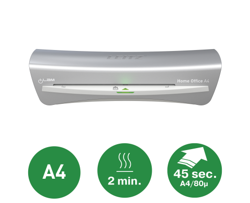 Vieną A4 dokumentą (2x80 mikronų) laminuoja per 45 sekundes.