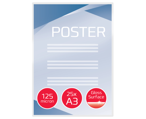 GBC laminavimo vokeliai yra patogus kasdienis sprendimas apsaugoti bet kokį dokumentą. Blizgi apdaila padidina spalvų kontrastą ir užtikrinta geresnę dokumento kokybę ir išvaizdą. Patvarūs ir ilgaamžiški. A3 formatas, 125 mikronai. Pakuotėje 25vnt.