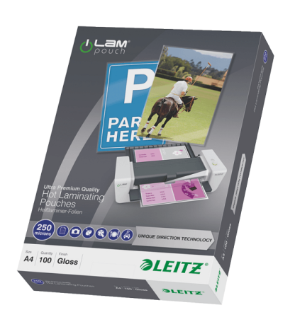 Leitz iLAM laminavimo vokeliai su UDT technologija. Visada paprasta. Jokių strigimų. Puikūs rezultatai. Jūsų dokumentai saugūs - jie nebus sugadinti netinkamo laminavimo. UTD rodyklės ant vokelių parodo teisingą laminavimo vokelių įdėjimo kryptį ir išnyksta po laminavimo. Jos garantuoja, kad jūsų dokumentas bus tobulai užlaminuotas ir saugus. iLAM UDT vokeliai užtikrina geriausią laminavimo kokybę su Leitz iLAM aparatais ir visais kitų gamintojų laminavimo aparatais.Prekės parametrai