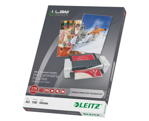 - Laminavimo vokeliai LEITZ UDTA3, 175 mik., 100 vnt.