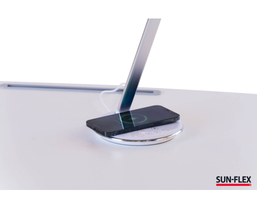 Stalinis šviestuvas SUN-FLEX®QLITE™ su belaidžiu integruotu telefono įkrovikliu, baltas