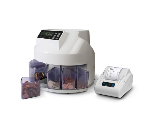 Skaičiuoja ir rūšiuoja 220 monetas per minutę.Bendrame inde telpa 500 monetų.