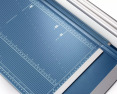 Pagrinde esančios pagalbinės formato linijos ir milimetrinė skalė padeda tiksliai išdėstyti pjaunamą medžiagą.