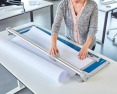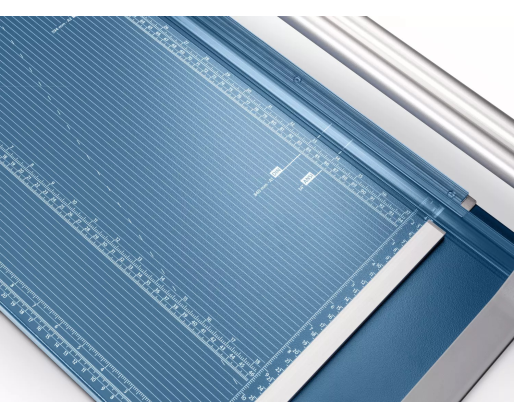 Pagrinde esančios pagalbinės formato linijos ir milimetrinė skalė padeda tiksliai išdėstyti pjaunamą medžiagą.