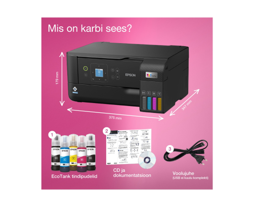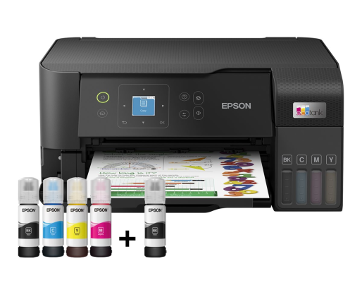 Kitos savybės Ultra-low-cost printing; Up to 66 cartridges in one set of inks; Hassle-free ink tank system; Epson Smart Panel app