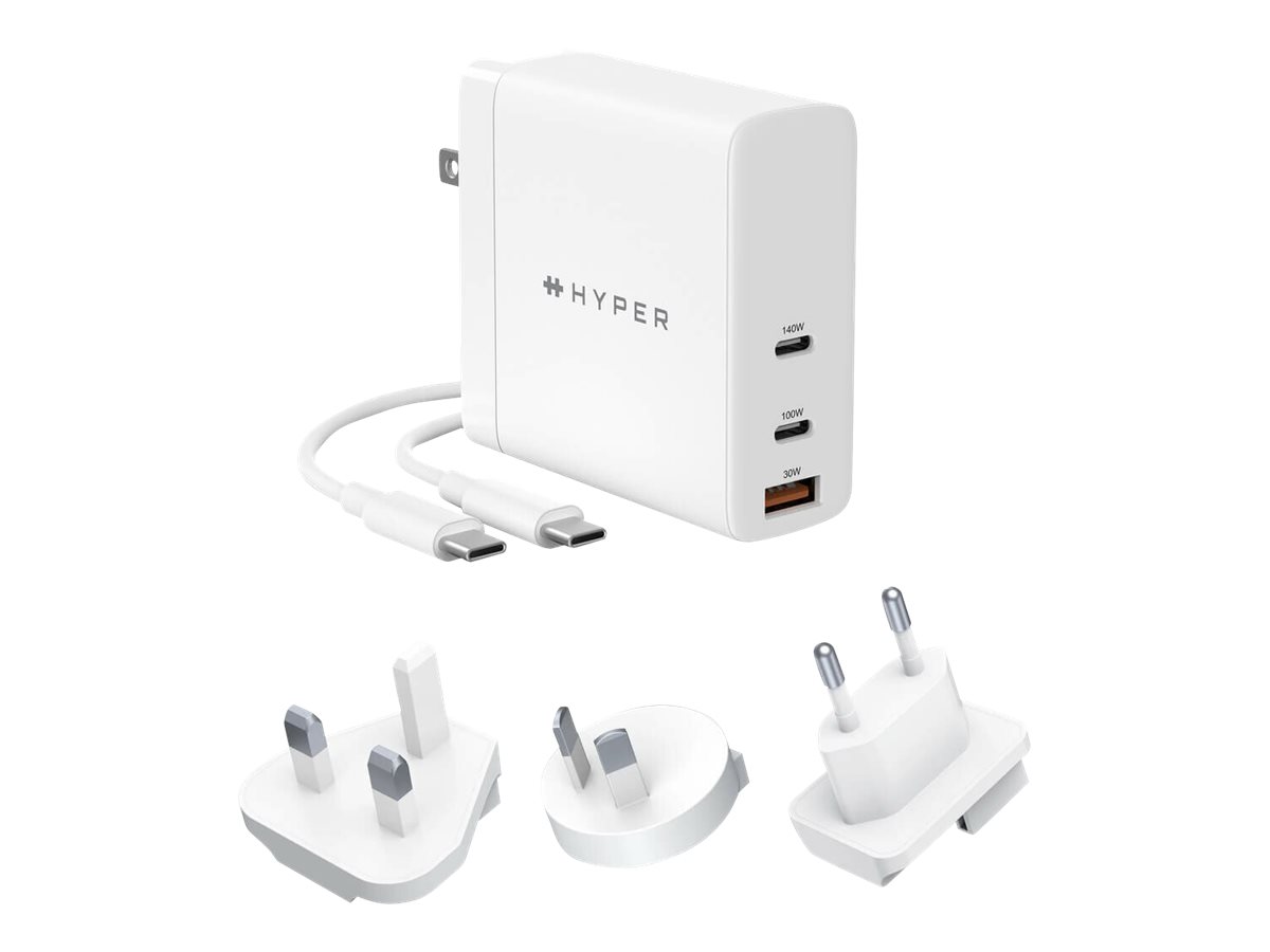 Hyper HyperJuice PD3.1 140 W 3-port GaN Wall-Charger - w 2m USB-C to C PD3.1 cable & Travel Adapters 423912