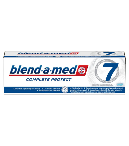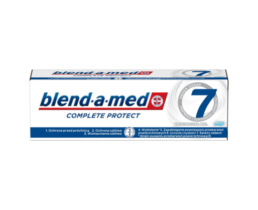 „Blend-a-med Complete Protect 7 Crystal White“ dantų pasta balina šalindama paviršiaus dėmes ir suteikia visokeriopą apsaugą, kad užtikrintų 7 sveikos ir gražios šypsenos požymius.