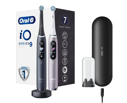 Oral-B Electric Toothbrush iO 9 Series Duo Rechargeable, For adults, Number of brush heads included 2, Black Onyx/Rose, Number of teeth brushing modes 7 383249