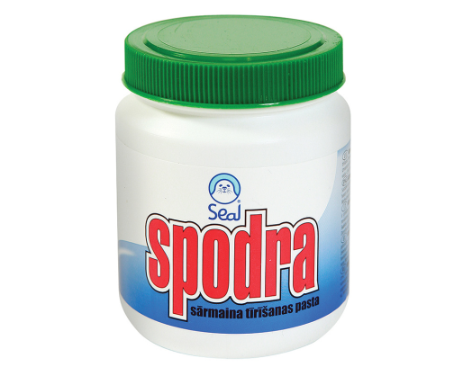 Šveičiamoji pasta Spodra, 350 g. Skirta metaliniams indams, plytelėms, vonioms, praustuvėms. PH lygis 11. Valo įvairios kilmės dėmes.Prekės parametrai
