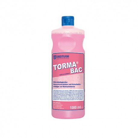 Mikrobiologinio kvapo naikintojas bei kasdienis valiklis, pagamintas bakteriniu pagrindu. TORMA® BAC įsiskverbia į pažeistą paviršių, šalina nemalonius kvapus, kurie stabdo organinių medžiagų suirimą. Ypač tinkamas kasdienei priežiūrai, taip pat smarkiai užterštų paviršių nemalonių kvapų naikinimui pvz. sanitarinėse patalpose.