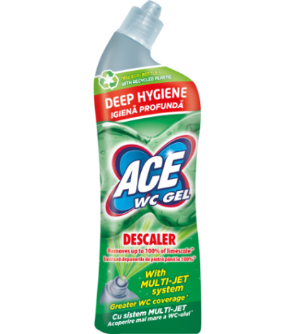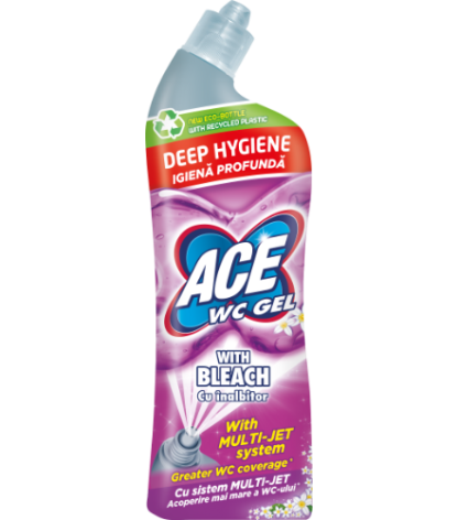 Dėl naujoviškos MULTI-JET sistemos ACE WC Glitter išvalo tualetą net ir sunkiausiai pasiekiamose vietose. Vienu metu šeši purkštukai lengvai pasiekia net po unitazo krašteliu ir garantuoja visišką ir vienodą aprėptį. Be to, jo speciali formulė su mikrokristalais garantuoja papildomą tualeto blizgesį ir palieka ilgai išliekantį gaivų kvapą.