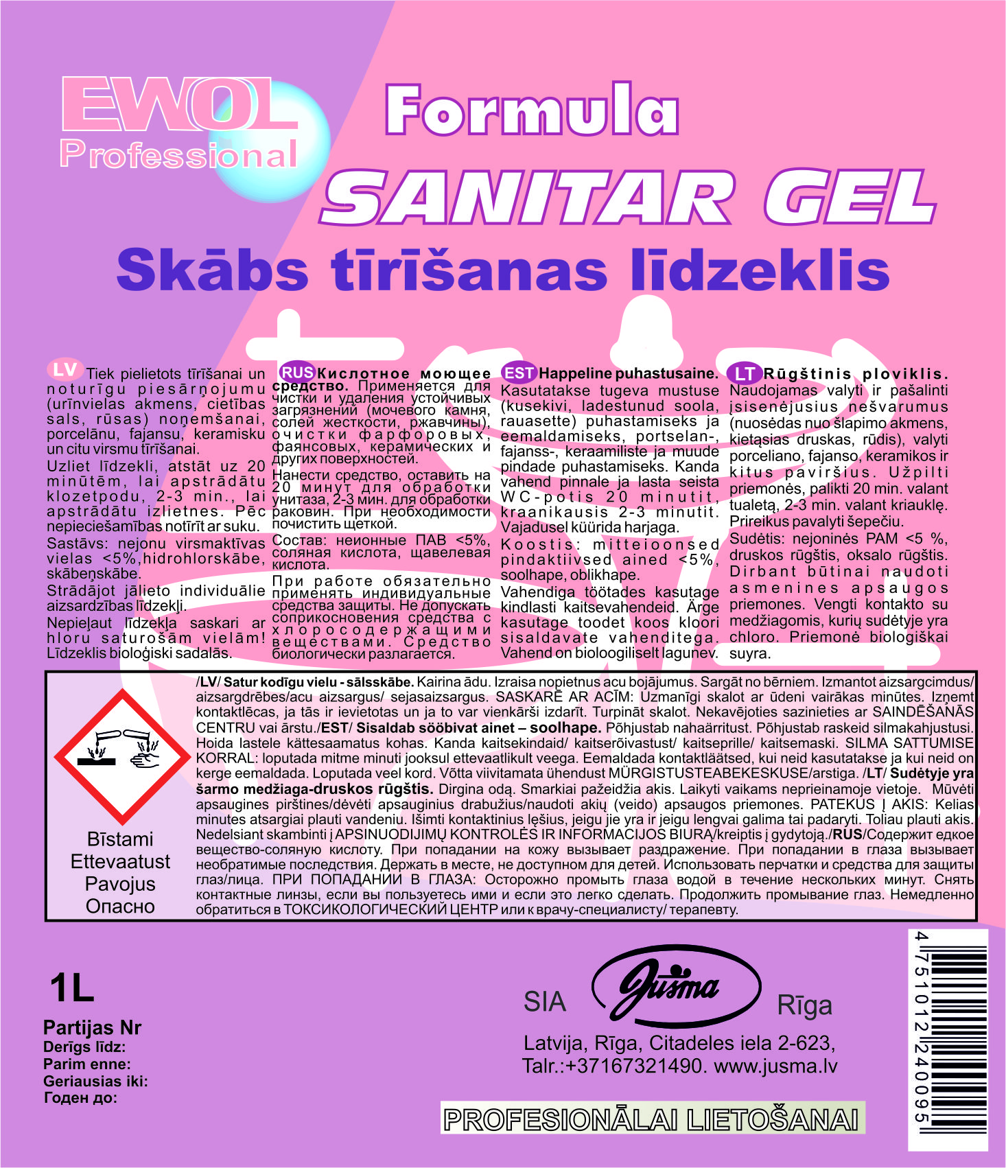 - WC valiklis EWOL PROFESSIONAL Formula Sanitar gelinis 1 l