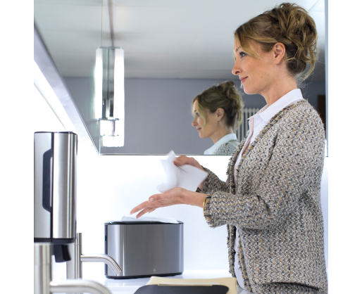 • Užpildo indikatorius apsaugo nuo netikėto rankšluosčių pasibaigimo.