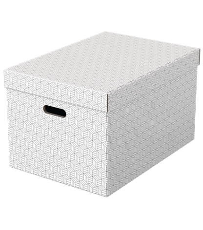 Rinkinys iš dviejų vidutinio dydžio, žemo aukščio daiktadėžių su dangčiais, pagamintų iš 100 % perdirbto FSC sertifikuoto kartono. Modernus ir švarus dizainas puikiai dera tiek namų, tiek biuro aplinkoje.