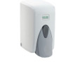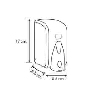 Plastikinis muilo dozatorius 500ml; Naudojant nereikia vidinių talpų. Atidaromas dangtelis ir pripilamas skystis. Matmenys: 10,5 x 12,5 x 17 cm.