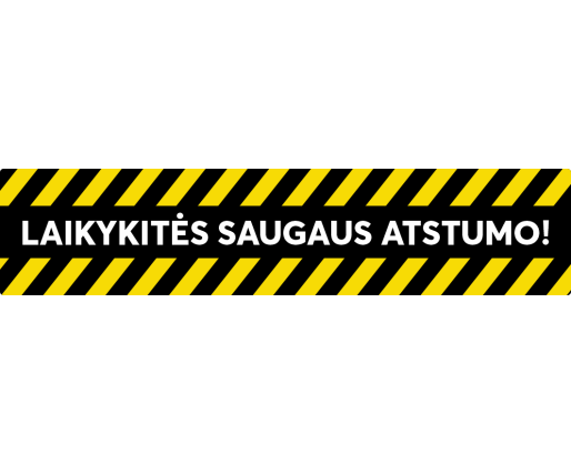 - Įspėjamasis grindų lipdukas 45x10 cm LAIKYKITĖS SAUGAUS ATSTUMO, juodas, su apsaugine p...