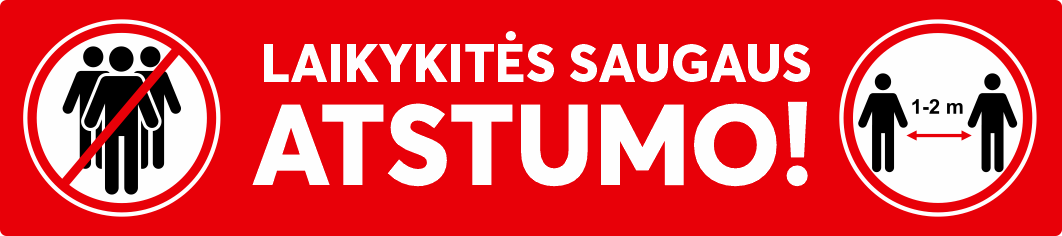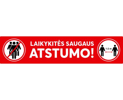 Įspėjamasis grindų lipdukas 45x10 cm LAIKYKITĖS SAUGAUS ATSTUMO, su apsaugine plėvele