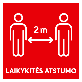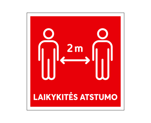 - Lipnus ženklas 12x12 cm LAIKYKITĖS ATSTUMO (su užrašu)