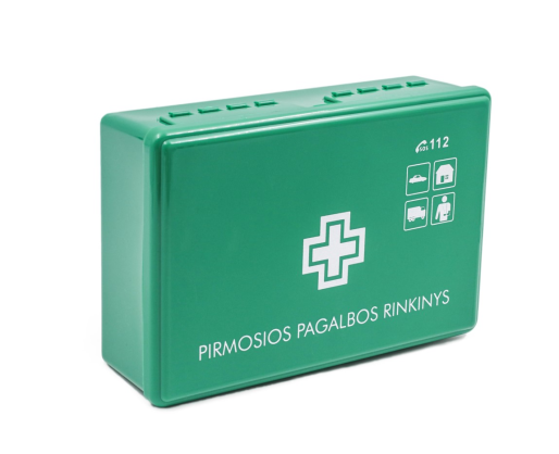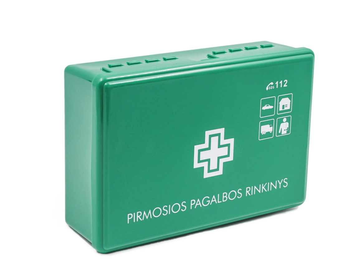 Naujos komplektacijos pirmosios pagalbos rinkinys plastikinėje dėžutėje (be laikiklio). Nauja sudėtis patvirtinta LR SAM 2020m gruodžio 10d.įsakymu Nr.V-2876.