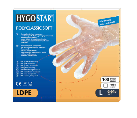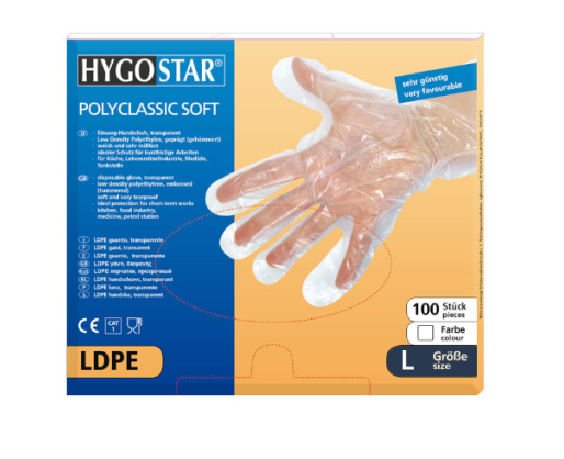 - Vienkartinės pirštinės POLYCLASSIC SOFT,LDPE, L dydis, skaidrios, 100 vnt.