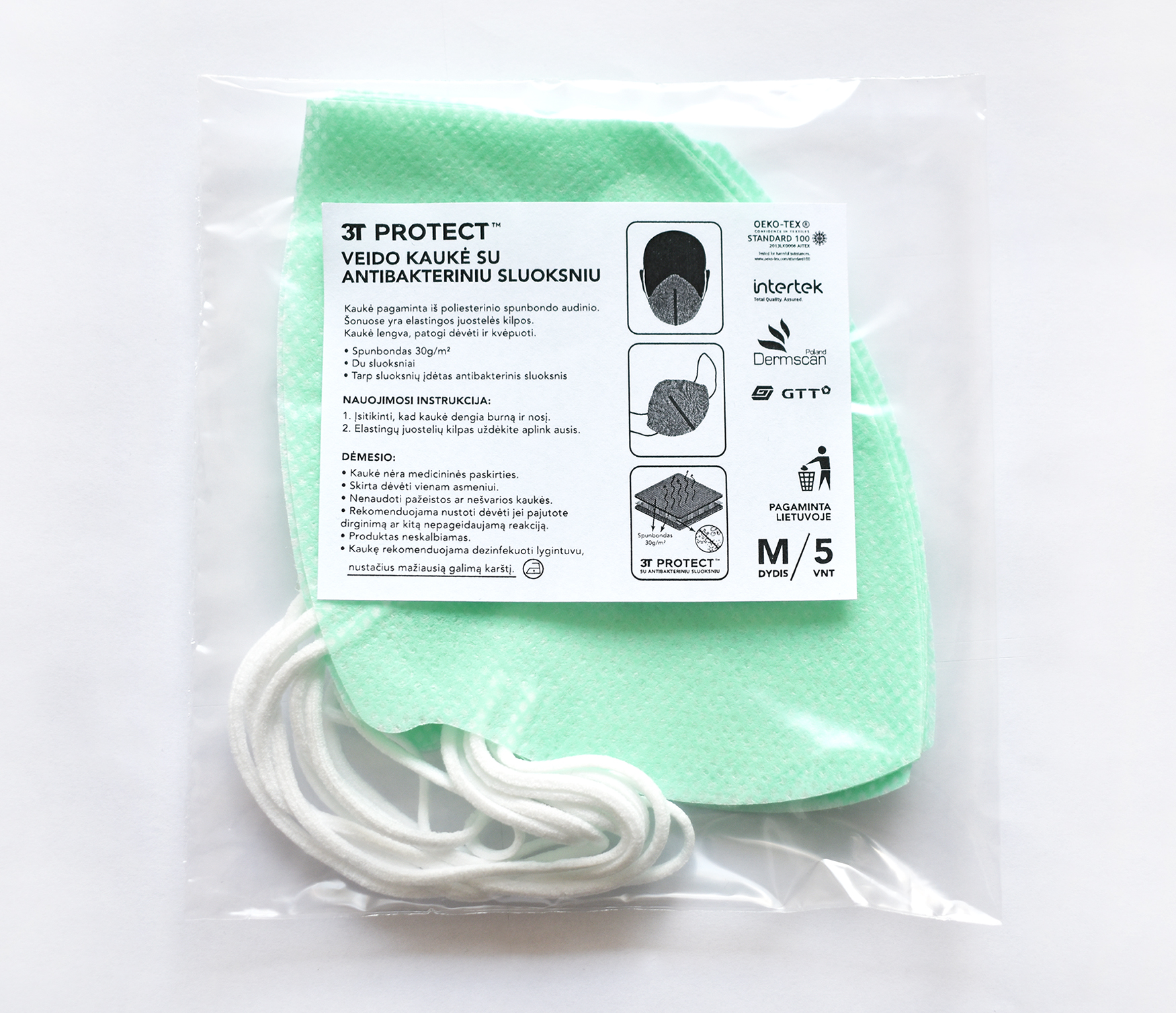 - Veido kaukė su antibakteriniu sluoksniu 3T 5 vnt.