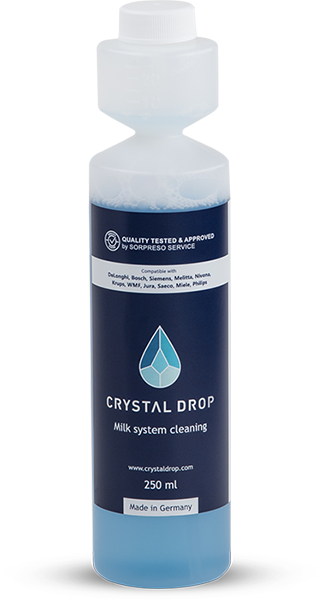 Šiuolaikinio kavos aparato neįsivaizduojame be galimybės gaminti Cappuccino ar Latte kavas. Tam, kad kavos aparatas suplaktų idealią pieno putą, turime užtikrinti pieno plakimo sistemai švarą ir higieną. „Crystal Drop“ linijos siūlomas pieno sistemos valiklis puikiai atlieka šią funkciją, efektyviai šalindamas pieno riebalus ir baltymų likučius. Patogi pakuotė turi integruotą dozatorių, kas palengvina matavimus tirpalo gamybai. Užtenka švelniai suspausti talpą ir priežiūros skystis patenka į atskirą skyrių, kuris turi gradavimą.