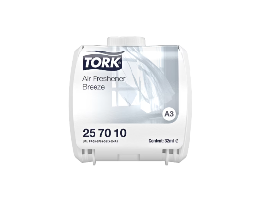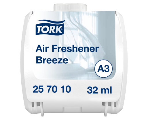 „Tork“ nuolatinis oro gaiviklis „Brizas“ padeda išsaugoti gaivą WC patalpoje, intensyvus gėlių, kvapiųjų kanangų ir medienos kvapas bei kvapų neutralizatorius suteikia nuolatinio gaivaus brizo pojūtį. Tinka „Tork“ nuolatinio oro gaiviklio dozatoriams, kuriuos valytojams lengva naudoti.