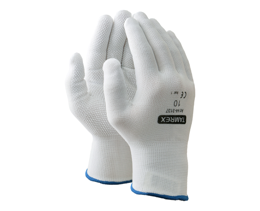 Darbo pirštinės TAMREX 3137, poliamidinis pluoštas su vinilo taškeliais, pora, dydis 8, balta