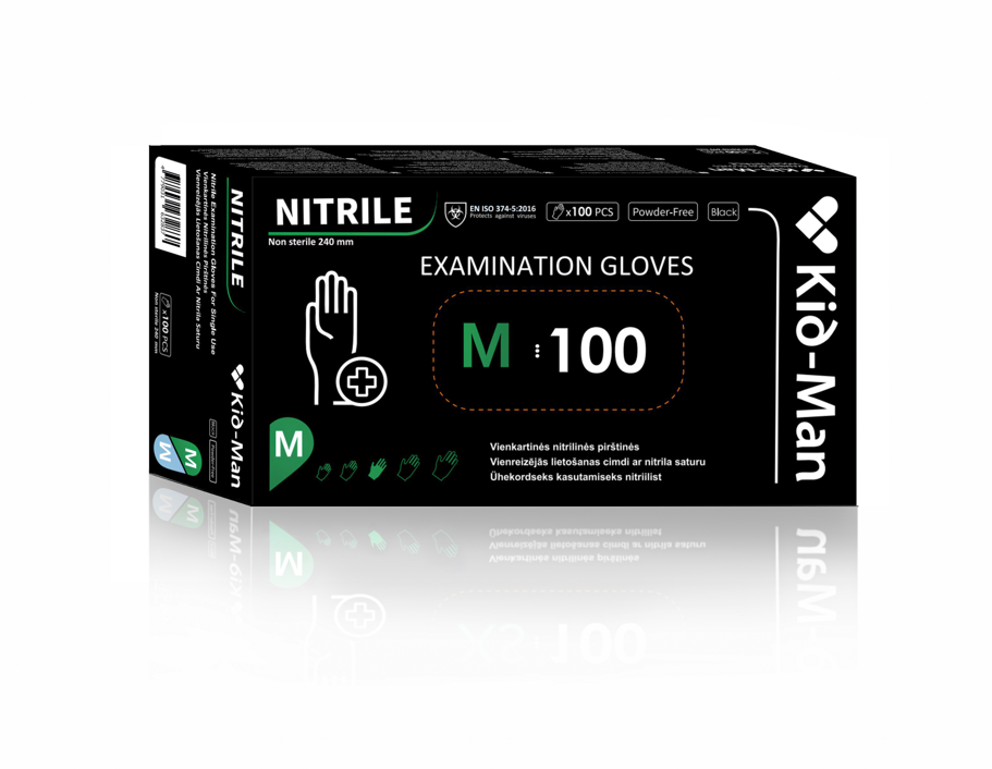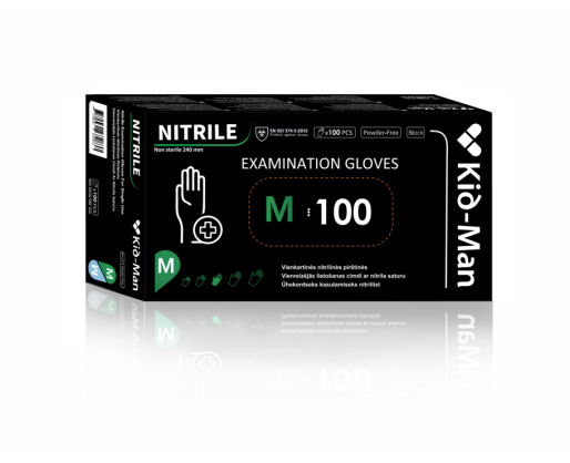 - Vienkartinės pirštinės juodos, nitrilinės, dydis M, 100 vnt