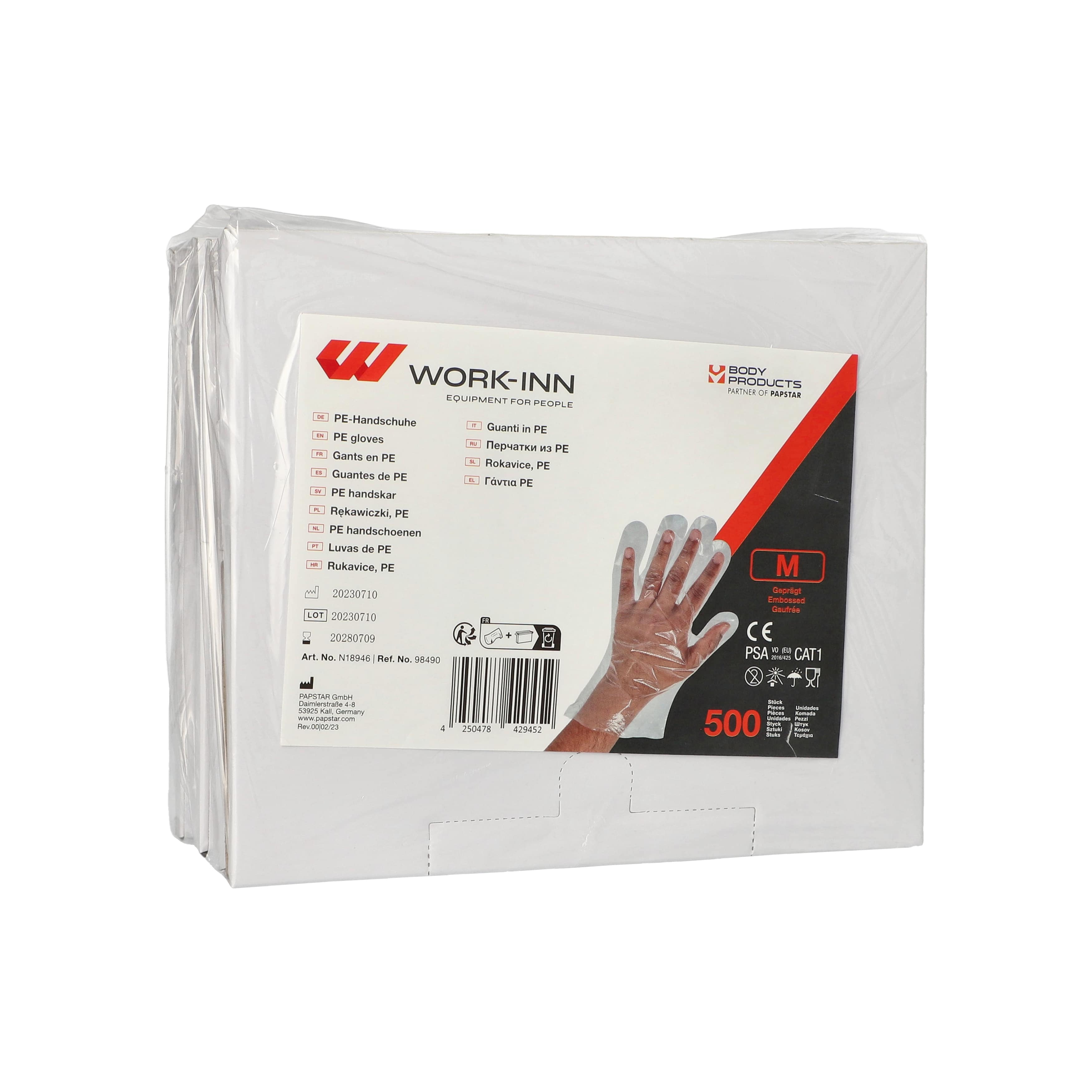 Vienkartinės pirštinės WORK-INN/-PS, PE, M dydis, 500 vnt.
