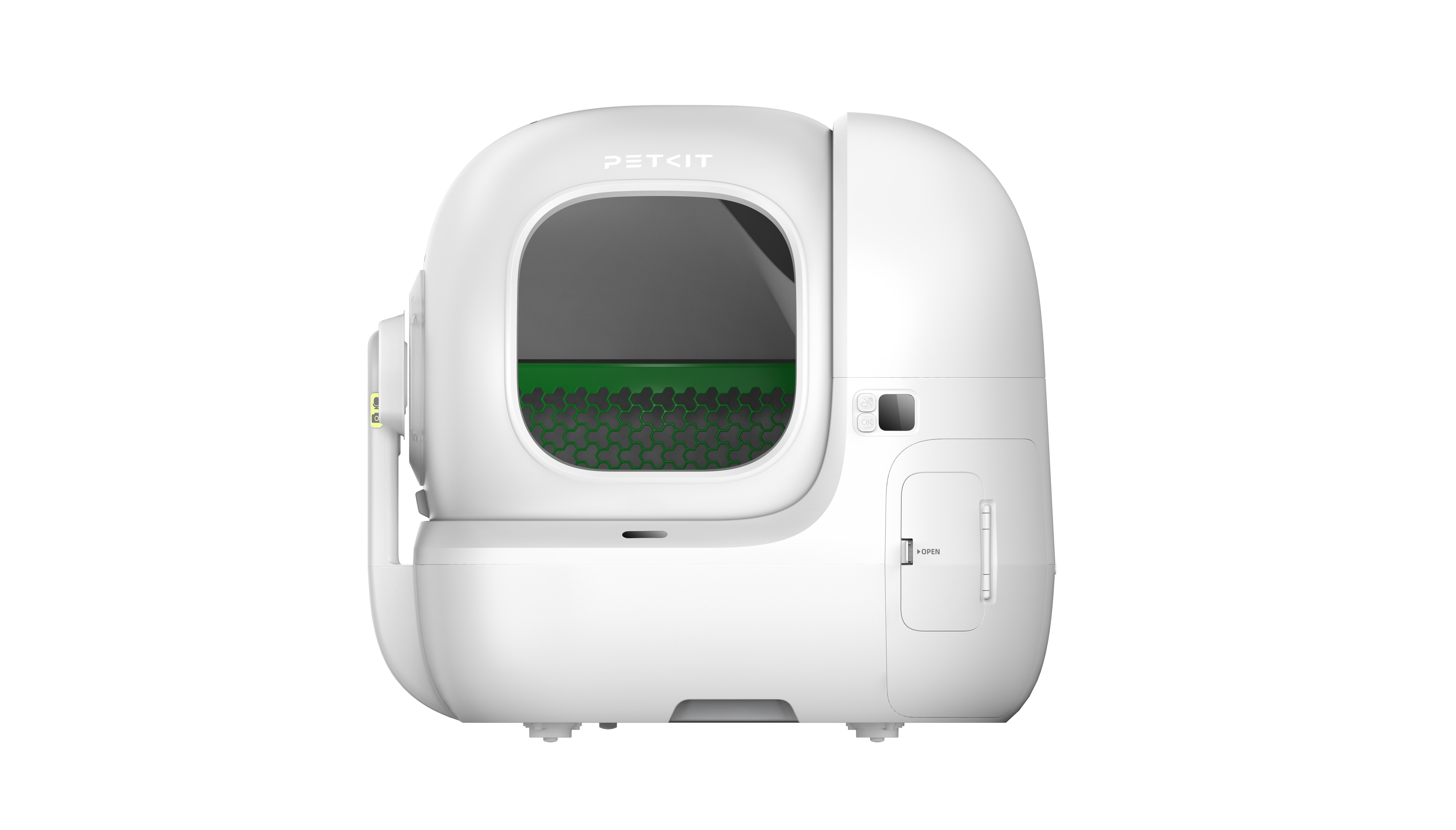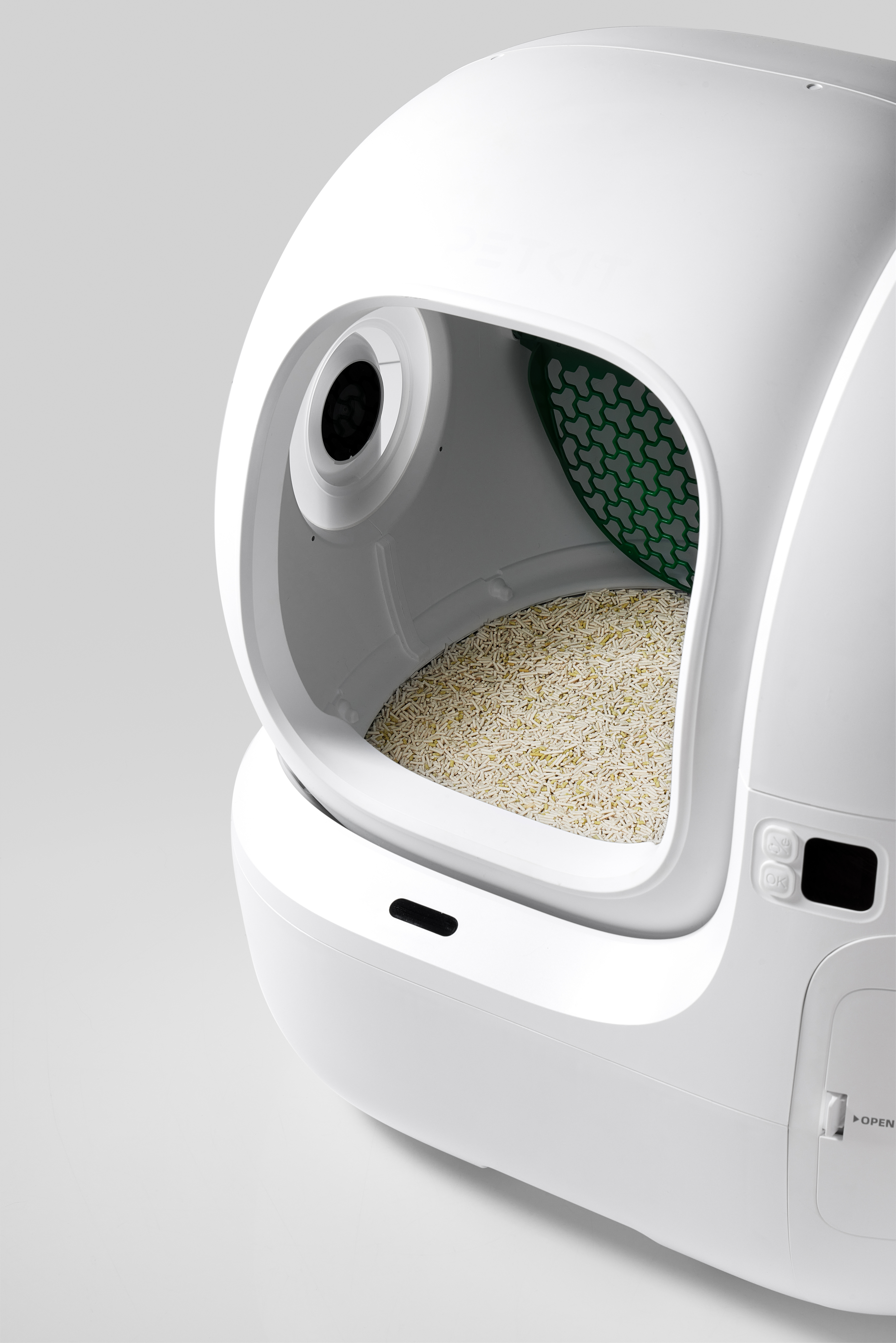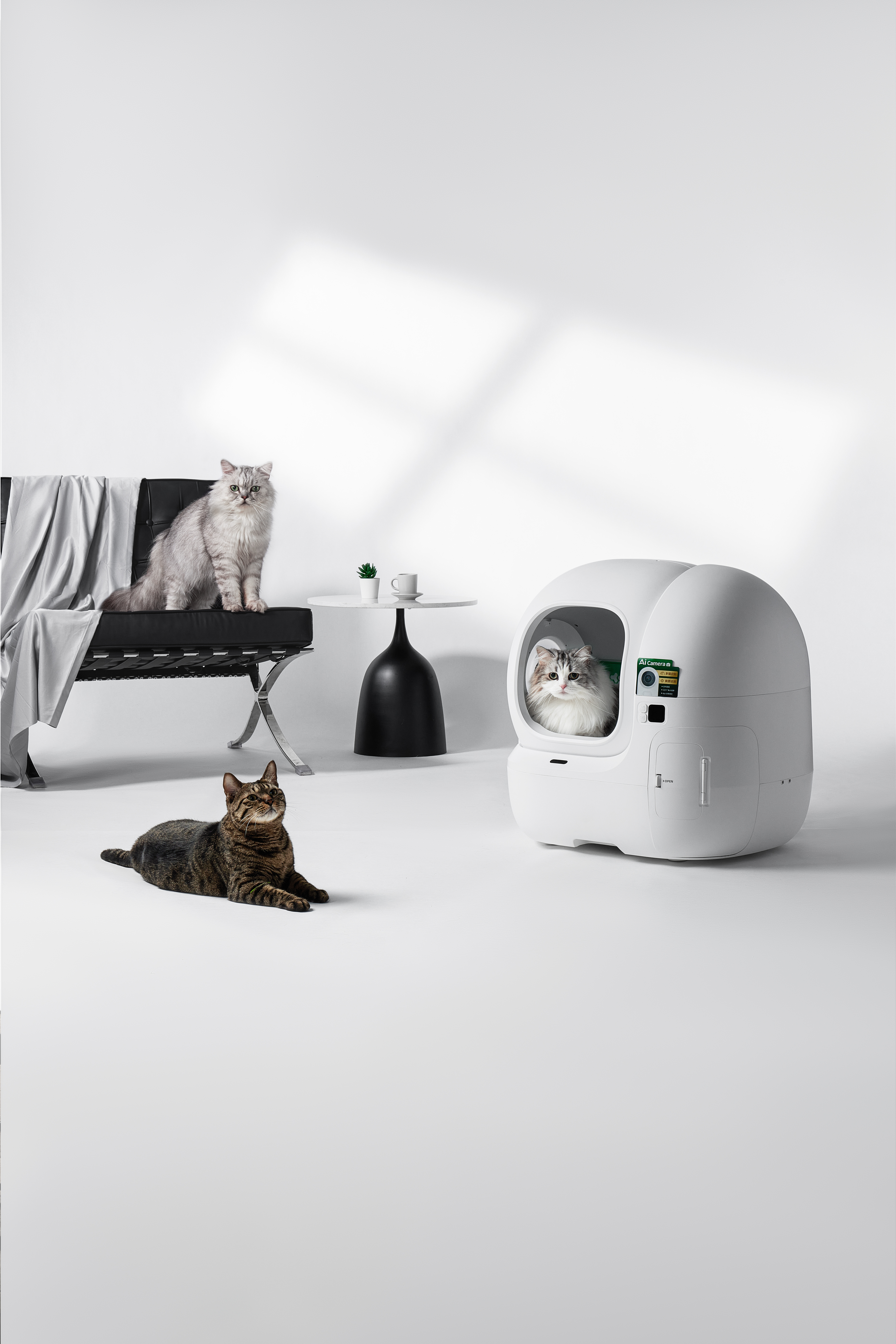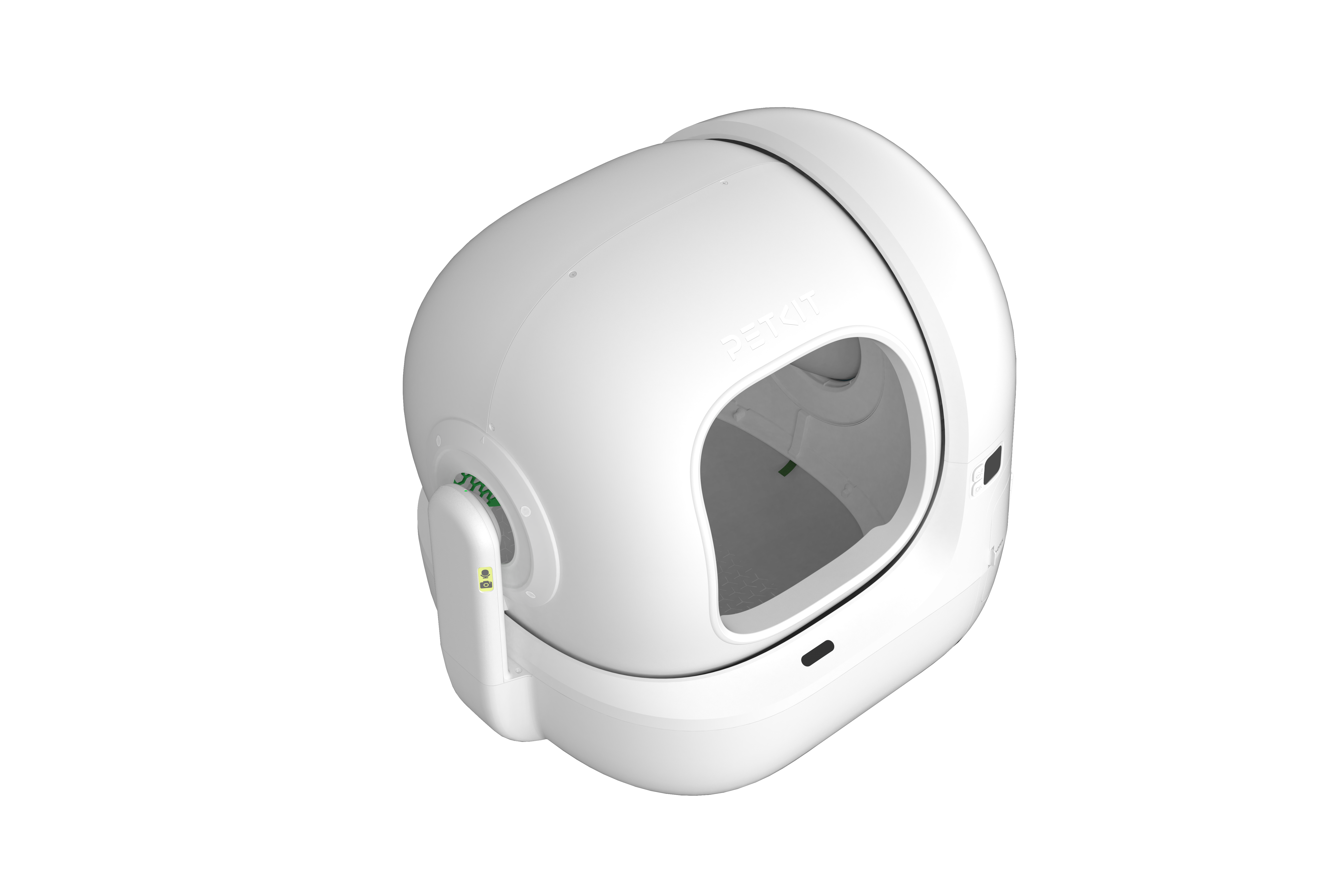 Kitos savybės Bigger Entry for Easy In & Out; AI Camera for Tracking Litter Box Usage & Urinary Health Monitoring; Multi-cat Recognition; Smart App Control & Health Insights; 17 Days Free-scooping (8L Waste Bin); Contactless Drawstring Waste Packing; Triple Odor Control; 100% Safety Protection; Patented Leak-proof Cylinder; Ultra Quiet