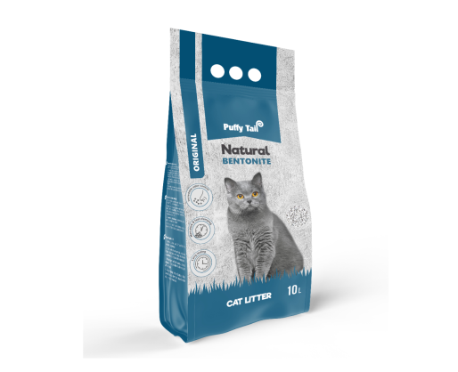 - Kačių kraikas, PUFFY TAIL NATURAL, betonitinis, sušokantis, 10 l