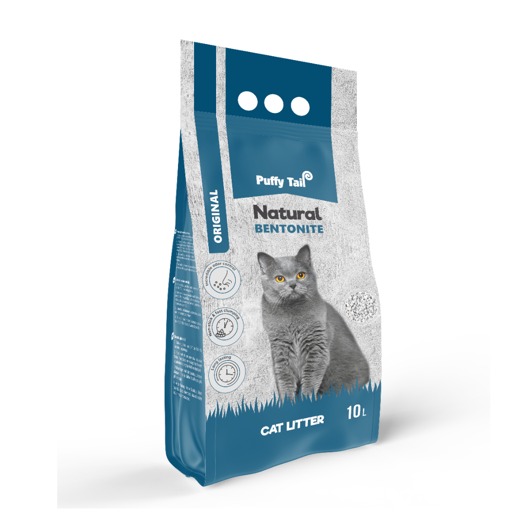 Kačių kraikas, PUFFY TAIL NATURAL, betonitinis, sušokantis, 10 l