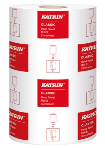 Popieriniai rankšluosčiai Katrin S2, 2 sluoksniai, 261 lapeliai, baltas, 60m ritinyje. Rulono diametras 14 cm, aukštis 20,5 cm.