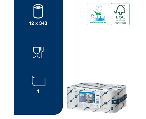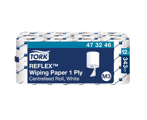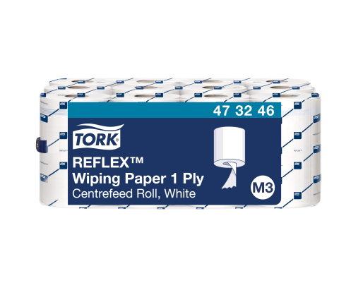 Popieriniai rankšluosčiai TORK, 473246, REFLEX MINI M3, 1.sl., 19.8 x 35 cm, 120 m/rul., balta sp.