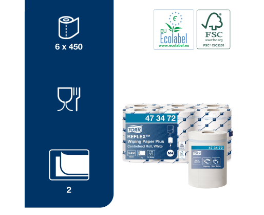 Popieriniai rankšluosčiai TORK, 473472, Reflex M4, 2 sl., 19.4 x 33.5 cm, 151 m/rul., balta sp.