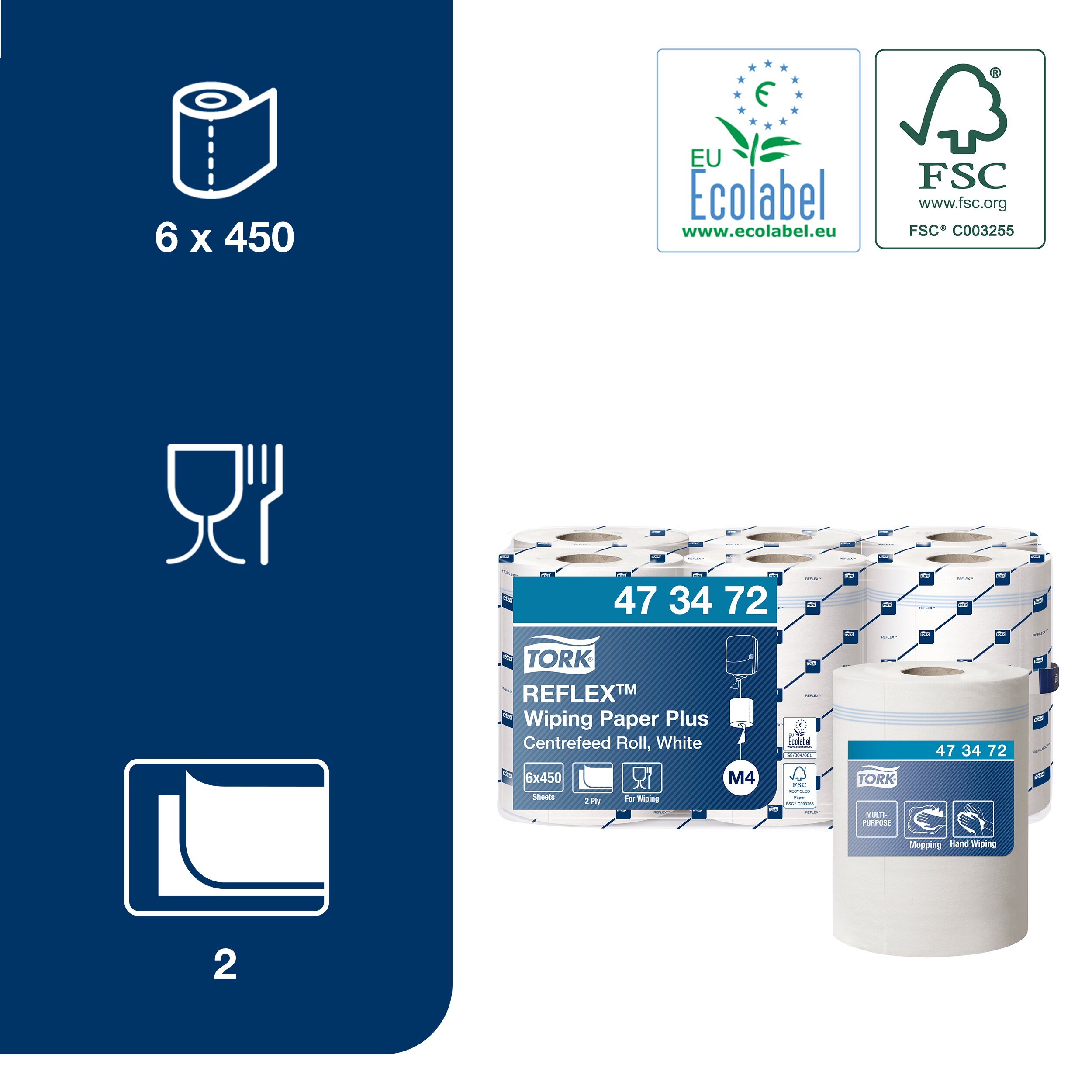 - Popieriniai rankšluosčiai TORK, 473472, Reflex M4, 2 sl., 19.4 x 33.5 cm, 151 m/rul., b...