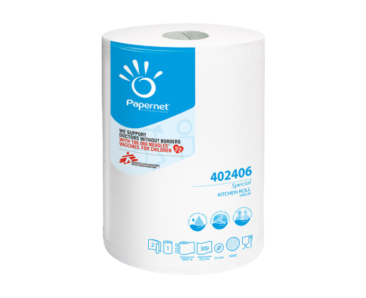 - Virtuvės rankšluostis PAPERNET, 2 sluoksnių, 69,53m., 309 lapų, baltas