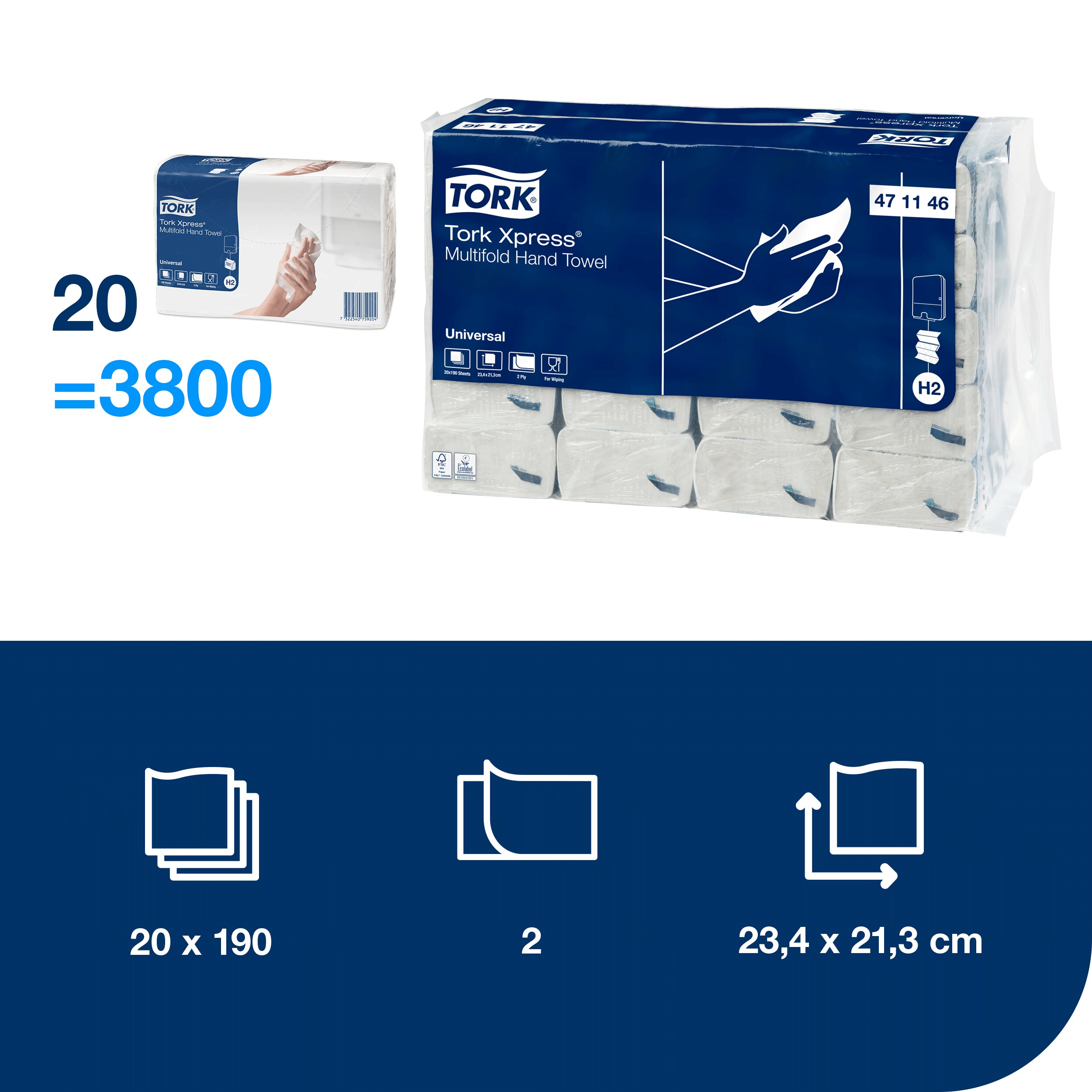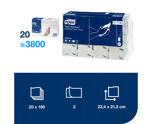 - Rankšluostis TORK XPRESS Multifold 471146, 2 sl., 23,4 x 21,3 cm, balta sp. su lapų raš...