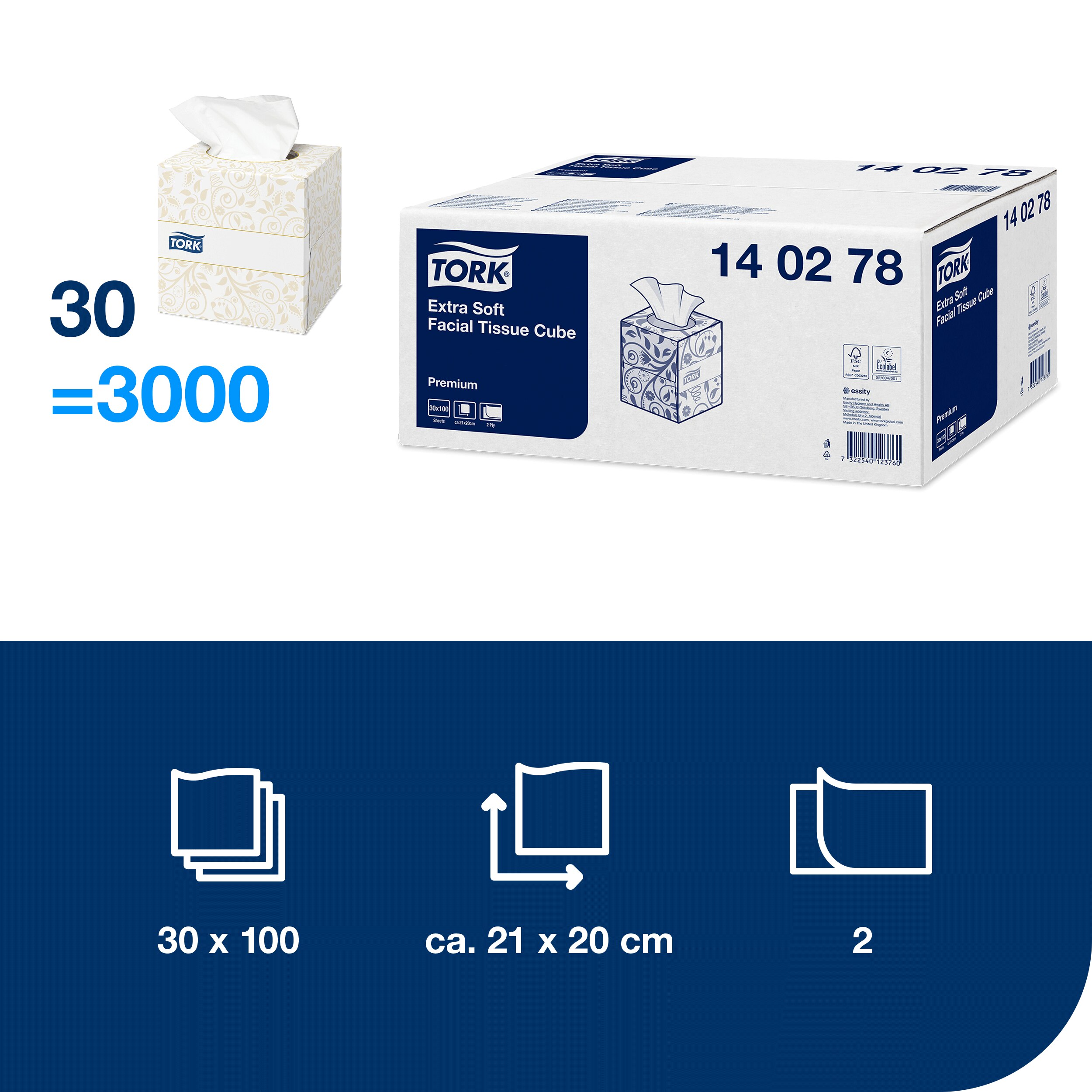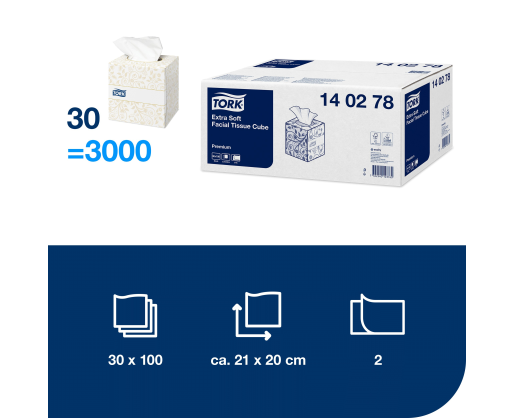 - Veido servetėlės TORK Premium F1 20.8 x 20cm, baltos, 2-ply, 100vnt. pakuotėje.