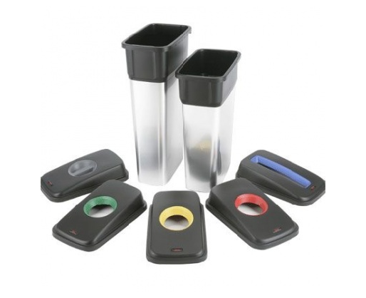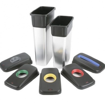 Didelės talpos, metalizuoto plastiko šiukšlių dėžė. Rinkitės šias šiukšlių dėžės atliekų rūšiavimui pritaikydami skirtingų spalvų dangčius. Specialiomis jungtimis tarpusavyje sujungite šiukšlių dėžes ir užtikrinkite tvarką patalpoje. Neslystantis pagrindas - apsaugo grindis ir išlaiko konteinerį pastovioje vietoje. Dangčius galima įsigyti atskirai.