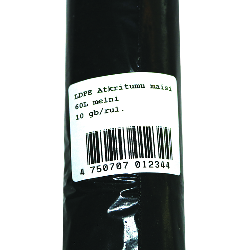 - Šiukšlių maišai, 60 L, 30 mik., LDPE, 64 x 84 cm, juoda sp., 10 vnt./rit.