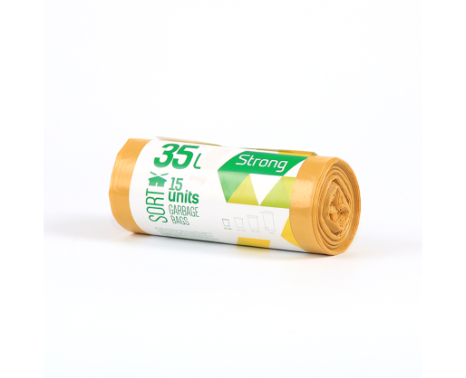 - Šiukšlių maišai SORTEX, 35 L, 30 mik, 15 vnt. ritinyje, LDPE, 50 x 60 cm, geltona sp.