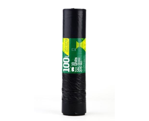 - Šiukšlių maišas SORTEX, juodas, užtraukiamas, 100 L x 10vnt. 35MK