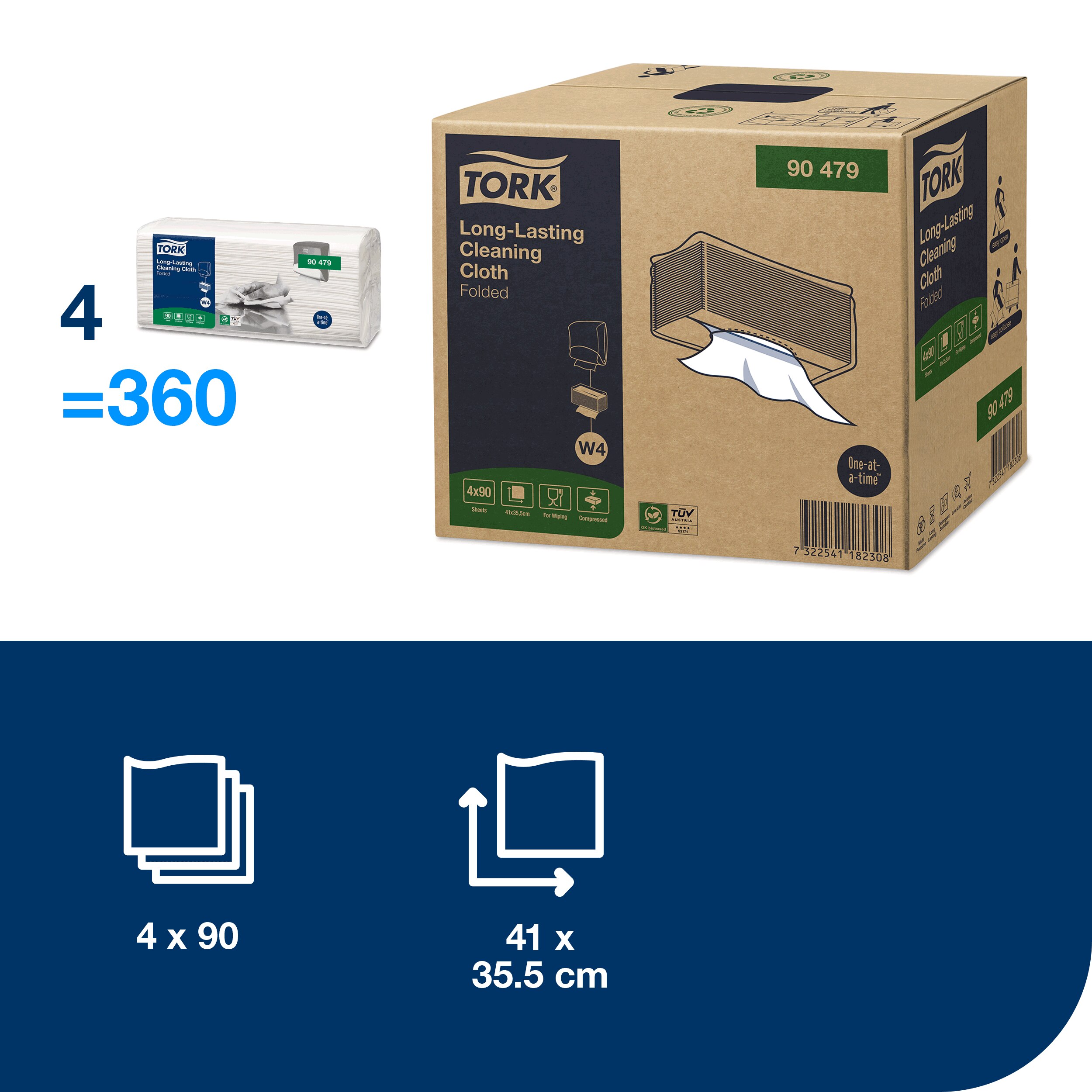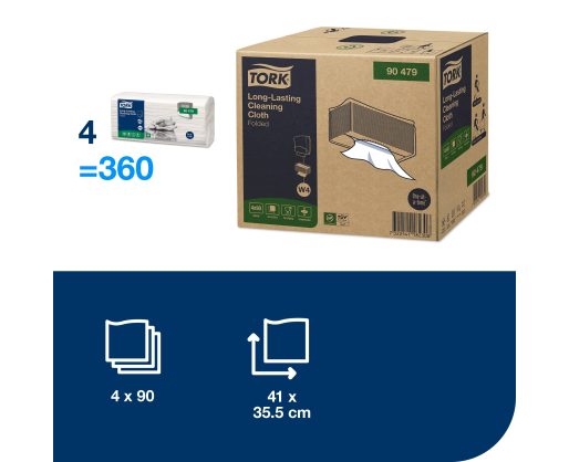 - Valymo šluostė TORK, ypač patvari, 90479, 1sl., 41cm x 35.5cm, balta spalva