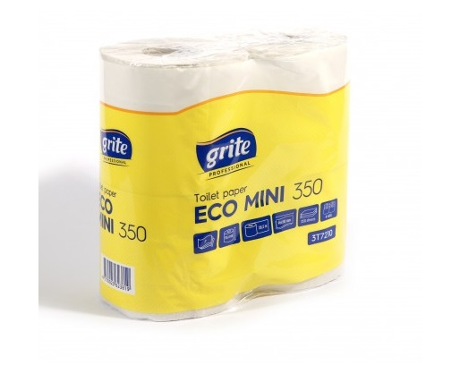 - Tualetinis popierius Grite Eco MINI 350, 2 sluoksnių, 4 rulonai