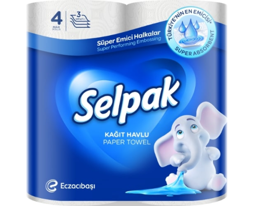 - Tualetinis popierius SELPAK, 3 sl., 18.6 m ilgio, 4 vnt./pak., balta sp.