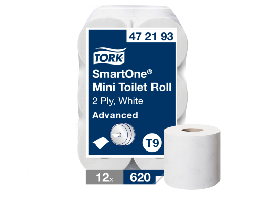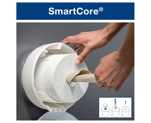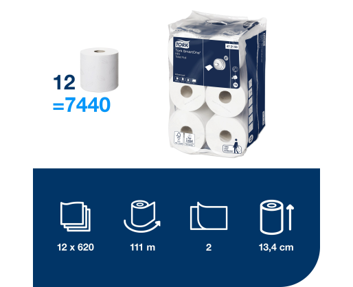 • Baltos spalvos tualetinis popierius, tinkantis SmartOne laikikliams. Perdirbto popieriaus ir celiuliozės mišinys, 2 sluoksnių, rulono ilgis 111 m, 620 lapelių, lapelio matmenys: 18 x 13,4 cm